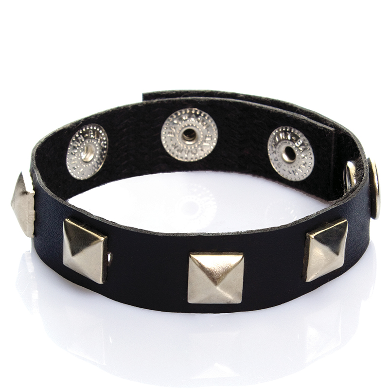 Anel ornamental feito em courvin, para uma fantasia mais fetichista, este anel deixa o pênis mais sexy com seus adereços em metal.