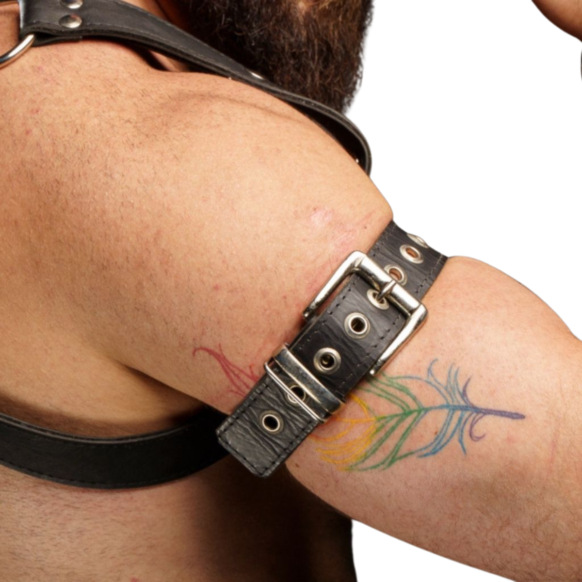 Inspirado na subcultura do BDSM, as braçadeiras de couro, em suma, são essenciais para quem quer complementar seu visual junto ao harness.