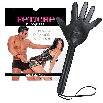 Excitação máxima com as marquinhas deixadas por essa chibata em courvin com formato de mão. Alça auxiliar para punho (uso) e para pendurar na cintura (descanso).