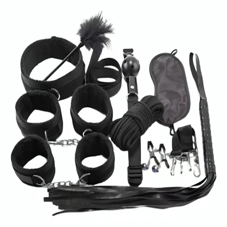 Kit 10 Sados Conjunto Bdsm Variados Couro Sintético Fetiche Bondage Bdsm Fetiche Dominação Submissão Algema Chicote