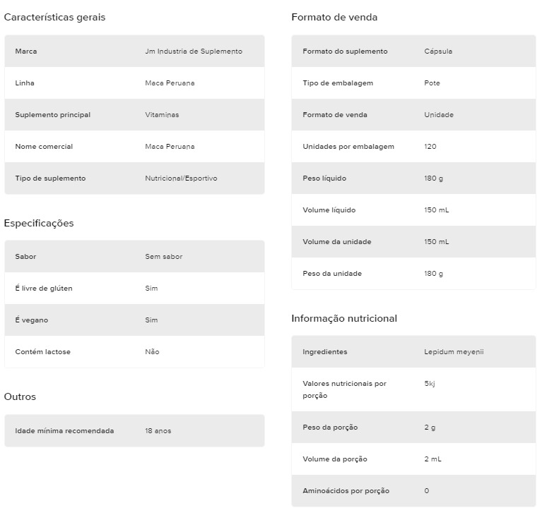 Maca Peruana Pura é um suplemento alimentar em cápsulas que busca complementar a dieta diária. Com uma vida agitada que muitas vezes impede a atenção adequada às necessidades nutricionais do corpo, este produto visa auxiliar na obtenção de vitaminas, minerais, proteínas e outros componentes essenciais para o funcionamento adequado do organismo.