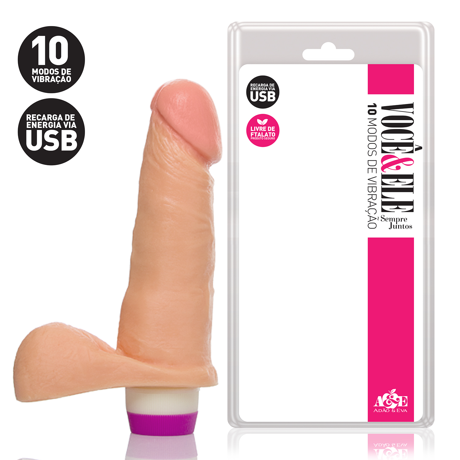 Além disso ele é todo trabalhado em PVC atóxico, possui glande bem definida e veias salientes, é o único no Brasil com certificado internacional de produto seguro livre de ftalato garantindo assim a qualidade única de um produto Adão e Eva.